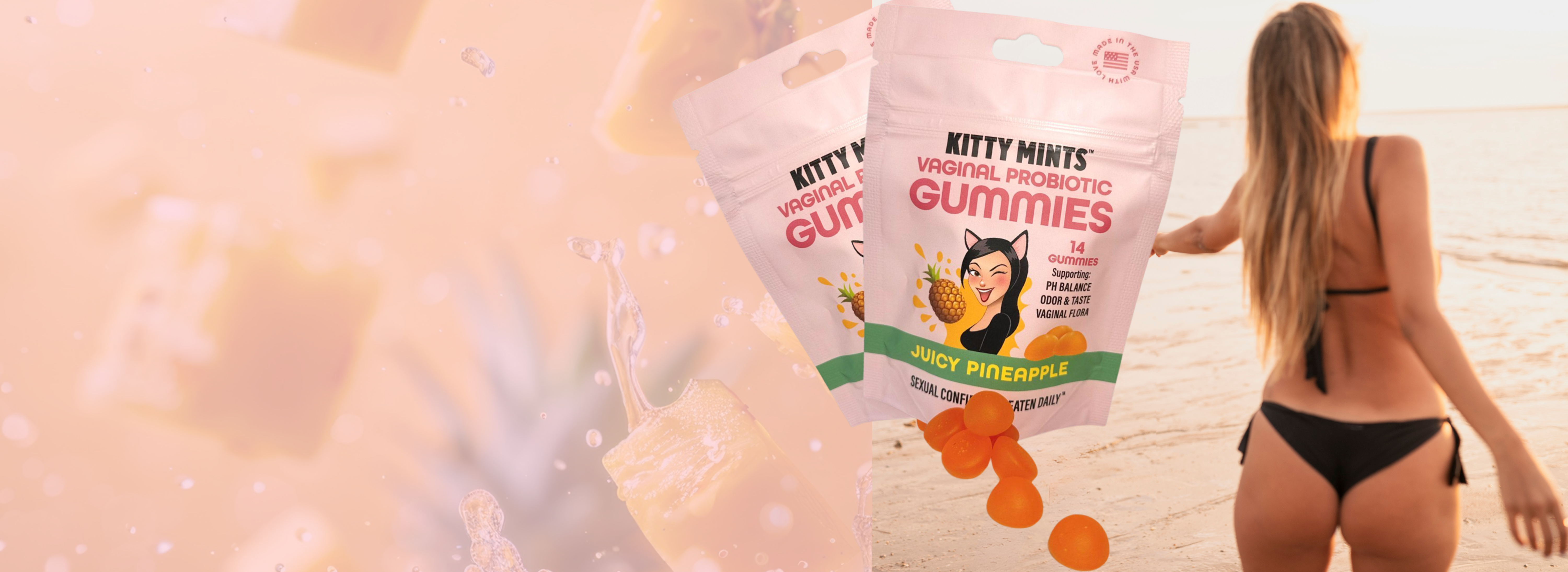When your pH balance is off, you can tell. And so can your partner. Kitty Mints gummies are like sprinkling catnip on your kitty. pHresh breath with a Juicy Pineapple twist, where it counts.
